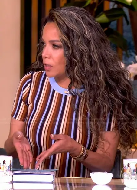 Sunny Hostin on The View on ABC was spotted wearing this striped top and skirt on The View on Jan 14 2026's episode. Sunny's Top is the Knoll Top by Cara Cara . Sunny's Skirt is the Montana Skirt by Cara Cara.