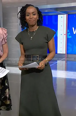 Zinhle Essamuah on NBC News Daily on NBC was spotted wearing this grey short sleeve knit dress on NBC News Daily on Jan 14 2026's episode. Zinhle's Dress is the Long Knit Dress in Green Marl by Zara.