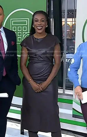 on Today on NBC was spotted wearing this brown midi dress on Today on Jan 15 2026's episode. 's Dress is the Chiara Faux Leather Midi Dress in Fossil Brown by Steve Madden . 's Earrings is the Small Drop Earrings by Bottega Veneta.