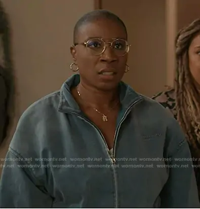 Henrietta Wilson (played by Aisha Hinds) on 9-1-1 on ABC was spotted wearing this blue denim jacket on 9-1-1 on episode 'War' (9x08) in Jan 2026. Hen's Jackaet is the Funnel Neck Jacket in Washed Light Blue by Alexander Wang.