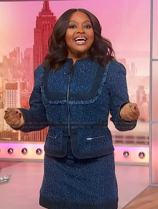 Sherri Shepherd on Sherri on FOX was spotted wearing this denim fringe trim jacket and mini skirt on Sherri on Jan 16 2026's episode. Sherri's Jacket is the Denim Tweed Fringe Jacket by GapStudio . Sherri's Skirt is the Denim Tweed Mini Skirt by GapStudio.