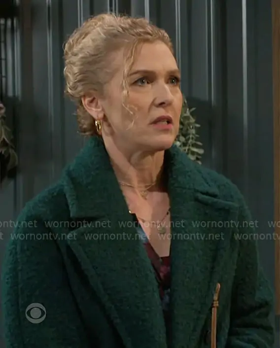 Jan Morgan (played by Jerri Tubbs) on Beyond the Gates on CBS was spotted wearing this green boucle coat on Beyond the Gates on Jan 16 2026's episode. Jan's Coat is the Double-Breasted Bouclé Coat by Bcbgeneration.