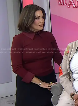 Alice + Olivia Porla Collared Sweater in Oxblood worn by Erica Taylor on Today