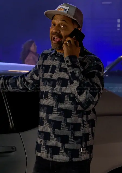 Bernard Upshaw (played by Mike Epps) on The Upshaws on Netflix was spotted wearing this denim jacket on The Upshaws on episode 'Indy Streets' (7x04) in Jan 2026. Bennie's Jacket is the Layton Denim Jacquard Overshirt by Les Deux.