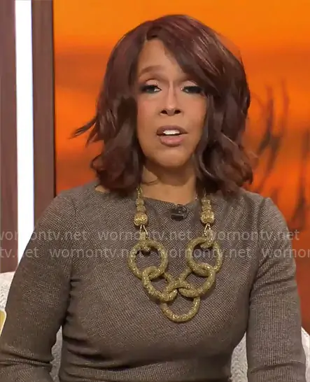 Gayle King on CBS Mornings on CBS was spotted wearing this brown boatneck midi dress on CBS Mornings on Jan 19 2026's episode. Gayle's Dress is the Nora Dress by Ralph Lauren Collection .