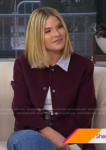 Jenna Bush Hager on Today on NBC was spotted wearing this burgundy jacket with striped collar on Today on Jan 19 2026's episode. Jenna's Jacket is the Striped Collar Jacket in Burgundy by Claudie Pierlot.