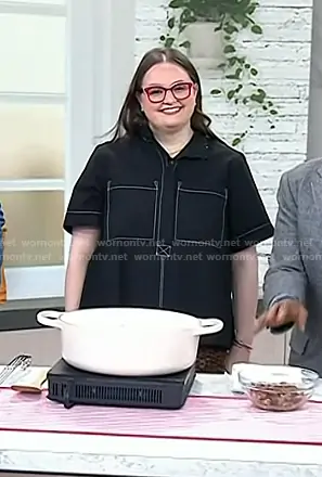 on Today on NBC was spotted wearing this navy top with white stitching on Today on Jan 20 2026's episode. 's Dress is the The Jeannie Short-Sleeve A-Line Mini Dress by Maeve.