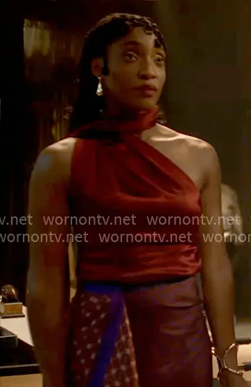 Faith Mitchell (played by Iantha Richardson) on Will Trent on ABC was spotted wearing this red one-shoulder top and printed skirt on Will Trent on episode 'Studio 4B' (4x03) in Jan 2026. Faith's Top is the Isadora Halter Tie-Neck Silk Top by Et Ochs . Faith's Skirt is the Scarfy Print Silk Satin Wrap Skirt by Dries van Noten . Faith's Earrings is the Gold-tone teardrop earrings by J. Crew.