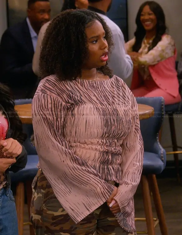 H&M Printed Smocked Top worn by Savannah (Daria Johns) on The Upshaws
