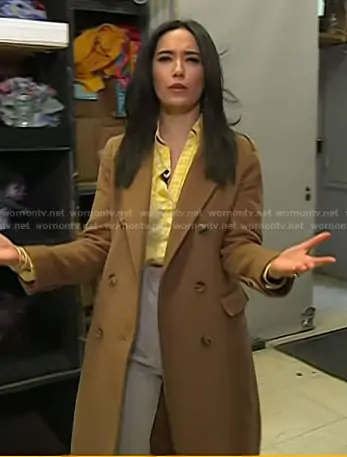 Emilie Ikeda on Today on NBC was spotted wearing this camel wool coat on Today on Jan 21 2026's episode. Emilie's Coat is the Double-Breasted Wool-Blend Coat in New Vicuna by Ralph Lauren.
