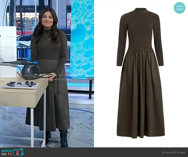 Adrianna Barrionuevo Brach on Today on NBC was spotted wearing this Adrianna’s army green mixed media midi dress on Today on Jan 21 2026's episode. Adrianna's Dress is the Barrett Dress in Carob by Marie Oliver.