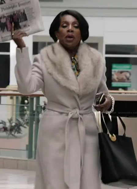 Barbara Howard (played by Sheryl Lee Ralph) on Abbott Elementary on ABC was spotted wearing this beige shearling collar coat on Abbott Elementary on episode 'Heroes' (5x11) in Jan 2026. Barbara's Coat is the Detachable Collar Manteco Wool Coat by Mango.