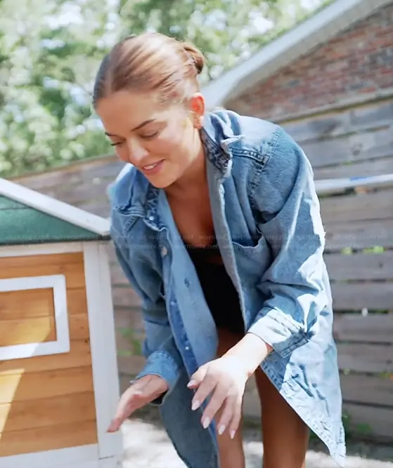 Salley Carson on Southern Charm on Bravo TV was spotted wearing this denim shirt on Southern Charm on episode 'Engaged in Battle' (11x08) in Jan 2026. Salley's Top is the Feather Soft Denim Shirt Light denim shirt by H&M.