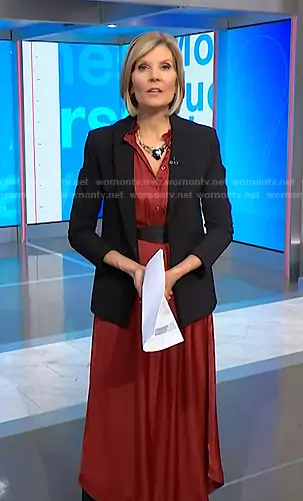 Kate Snow on NBC News Daily on NBC was spotted wearing this red dress and black blazer on NBC News Daily on Jan 22 2026's episode. Kate's Dress is the Raos Dress by Zadig and Voltaire . Kate's Jacket is the Scuba Jacket by Veronica Beard.