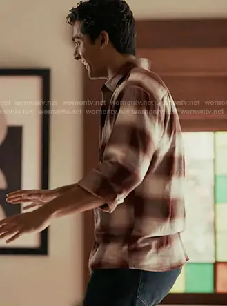 Ravi Panikkar (played by Anirudh Pisharody) on 9-1-1 on ABC was spotted wearing this Ravi’s brown plaid shirt on 9-1-1 on episode 'Fighting Back' (9x09) in Jan 2026. 's Shirt is the Flannel Shirt in 16 Red by Uniqlo . 's Shoes is the Samba OG Shoes by Adidas.