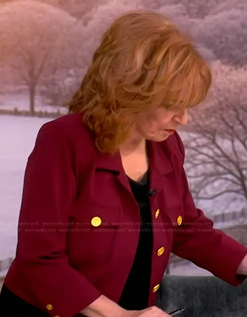Joy Behar on The View on ABC was spotted wearing this red gold button jacket on The View on Jan 22 2026's episode. Joy's Jacket is the Kumi Button Front Crop Jacket by L'Agence.