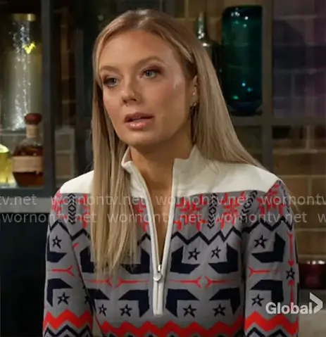 Abby Newman (played by Melissa Ordway) on The Young and the Restless on CBS was spotted wearing this fair isle zip sweater on The Young and the Restless on Jan 22 2026's episode. Abby's Sweater is the Nordic Half Zip Sweater by Perfect Moment.