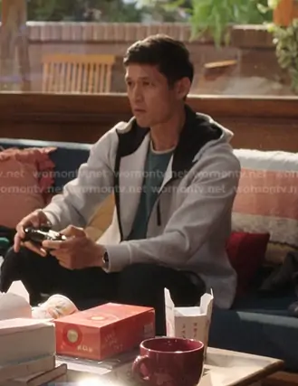 Benson Kwan (played by Harry Shum Jr.) on Greys Anatomy on ABC was spotted wearing this white zip-up hoodie on Greys Anatomy on episode 'Take Me to the River' (22x15) in Mar 2026. Blue's Sweater is the Sport Fleece Full Zip Hoodie in Light Heather Gray by DSG.