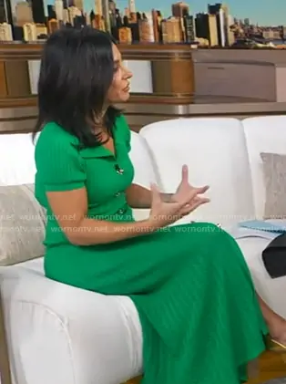 Dr. Tara Narula on Good Morning America on ABC was spotted wearing this green knit button front dress on Good Morning America on Jan 23 2026's episode. Tara's Dress is the Lorel Short Sleeve Maxi Shirtdress by Sandro.