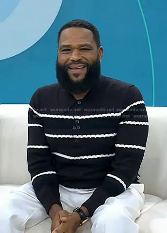 on Today on NBC was spotted wearing this brown striped polo sweater on Today on Jan 23 2026's episode. 's Sweater is the Alfie 60019 Polo Sweater in Dusky Port by NN07.
