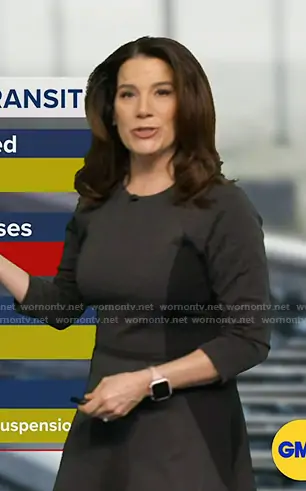 Heather O’Rourke on Good Morning America on ABC was spotted wearing this dark grey colorblock dress on Good Morning America on Jan 26 2026's episode. Heather's Dress is the Skater Dress by Daisy Fuentes.