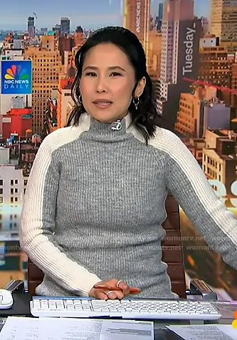 Vicky Nguyen on NBC News Daily on NBC was spotted wearing this grey and white ribbed sweater on NBC News Daily on Jan 27 2026's episode. Vicky's Sweater is the Ciara Color-Block Sweater by Reiss.