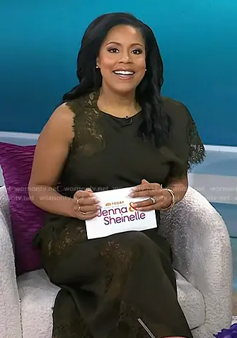 Sheinelle Jones on Today on NBC was spotted wearing this army green lace dress on Today on Jan 28 2026's episode. Sheinelle's Dress is the Alessia Dress in Military by A.L.C..