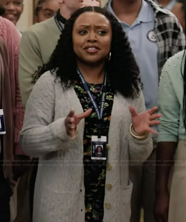 Janine Teagues (played by Quinta Brunson) on Abbott Elementary on ABC was spotted wearing this black floral print dress on Abbott Elementary on episode 'Picture Day' (5x12) in Jan 2026. Janine's Dress is the Slim Floral Dress by Desigual.