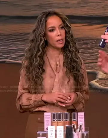 Sunny Hostin on The View on ABC was spotted wearing this beige satin tie neck blouse on The View on Jan 30 2026's episode. Sunny's Top is the Cloud Leopard Pajama Shirt by Stella McCartney.