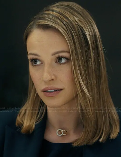 Rebecca Falcone (played by Kayla Wallace) on Landman on Paramount was spotted wearing this gold pendant necklace on Landman on episode 'Plans, Tears and Sirens' (2x09) in Dec 2025. Rebecca's Necklace is the Dextera Pendant Interlinked Gold Shiny by Swarovski.