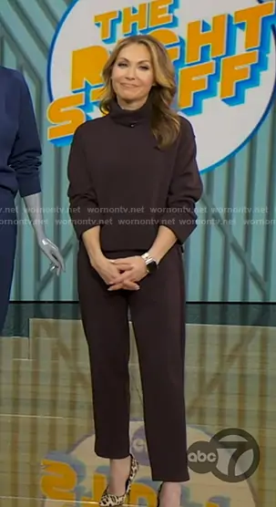Lori Bergamotto on Good Morning America on ABC was spotted wearing this brown turtleneck sweatshirt and pants on Good Morning America on Jan 30 2026's episode. Lori's Sweater is the Cuffed Sleeve Crop Turtleneck Sweatshirt in Truffle Brown by Spanx . Lori's Pants is the AirEssentials Straight Leg Ankle Pants in Truffle Brown by Spanx.
