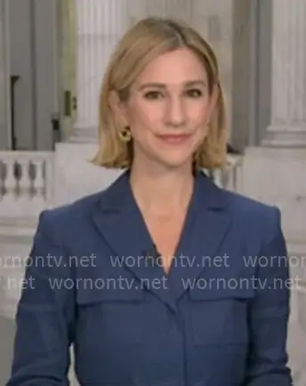 Caitlin Huey-Burns on CBS Mornings on CBS was spotted wearing this blue jacket with pockets on CBS Mornings on Jan 30 2026's episode. Caitlin's Jacket is the Linen Blend Safari Jacket by Ann Taylor .