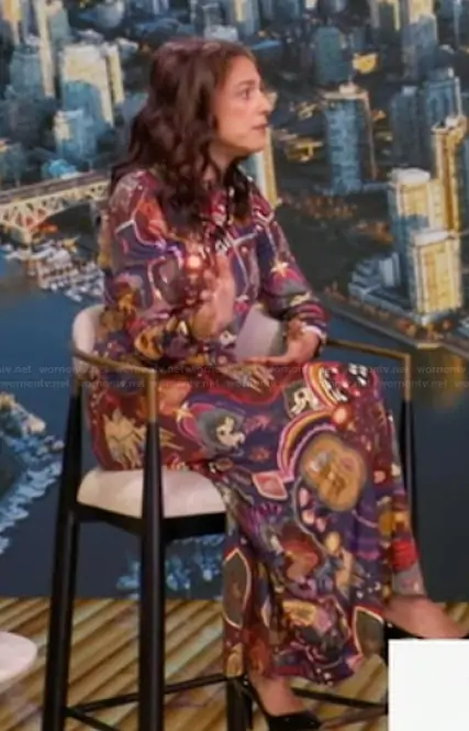 on Live with Kelly and Mark on Disney ABC Home Entertainment was spotted wearing this printed mesh dress on Live with Kelly and Mark on Feb 02 2026's episode. 's Dress is the Artsy Surreal Long Sleeve Floral Jersey Dress by Farm Rio.