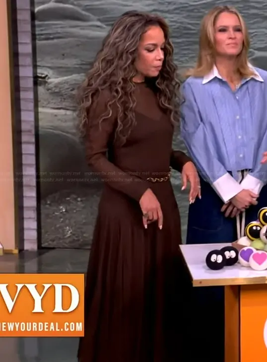 Sunny Hostin on The View on ABC was spotted wearing this brown mesh long sleeve dress on The View on Feb 02 2026's episode. Sunny's Dress is the Rebellion Handkerchief Dress by Zimmermann.