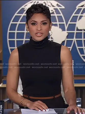 Jericka Duncan on CBS Evening News on CBS was spotted wearing this brown sleeveless turtleneck dress on CBS Evening News on Feb 02 2026's episode. Jericka's Dress is the Funnel-Neck Admiral Crepe Sleeveless Midi Dress in Dark Cacao by Theory.