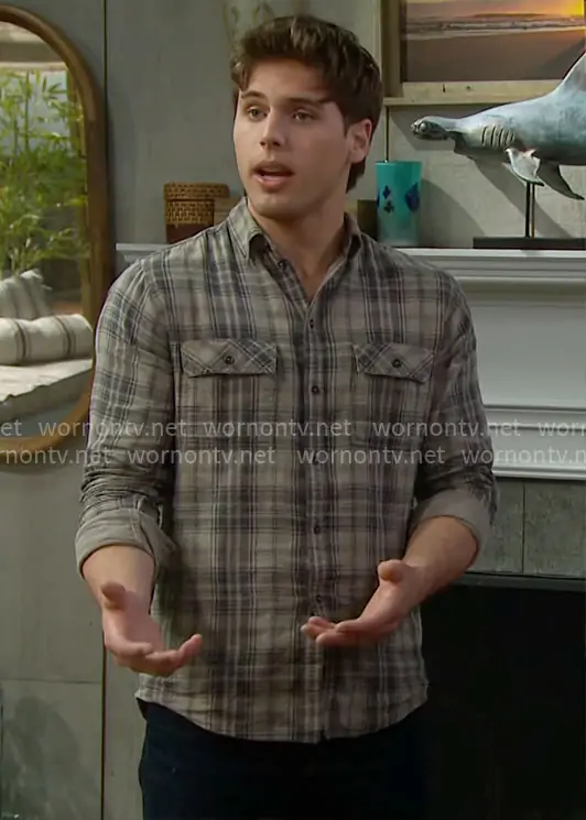 Will Spencer (played by Crew Morrow) on The Bold and the Beautiful on CBS was spotted wearing this beige plaid shirt on The Bold and the Beautiful on Feb 02 2026's episode. Will's Shirt is the Redding Shirt in Stone Plaid by Rowan.