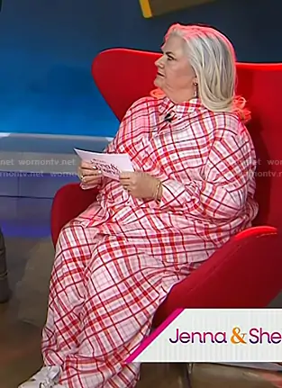 on Today on NBC was spotted wearing this red plaid shirt and pants on Today on Feb 03 2026's episode. 's Top is the Cooling Stretch Cupro Artist Shirt by Universal Standard . 's Pants is the Palais Cooling Cupro Wide Leg Pant by Universal Standard.