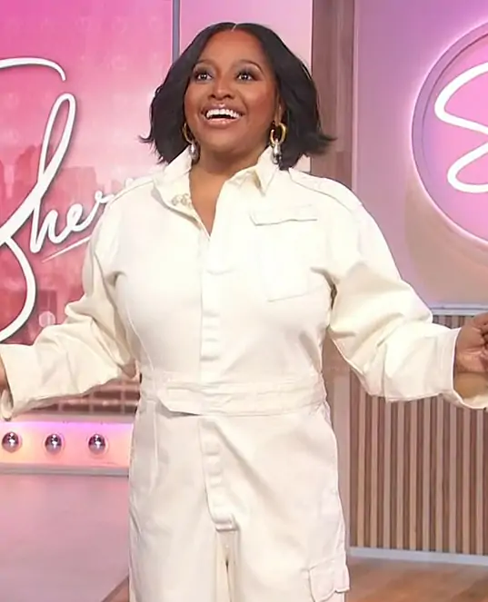 Sherri Shepherd on Sherri on FOX was spotted wearing this ivory denim jumpsuit on Sherri on Feb 04 2026's episode. Sherri's Overalls is the Rebelle Reserve Coveralls by Oak & Acorn.