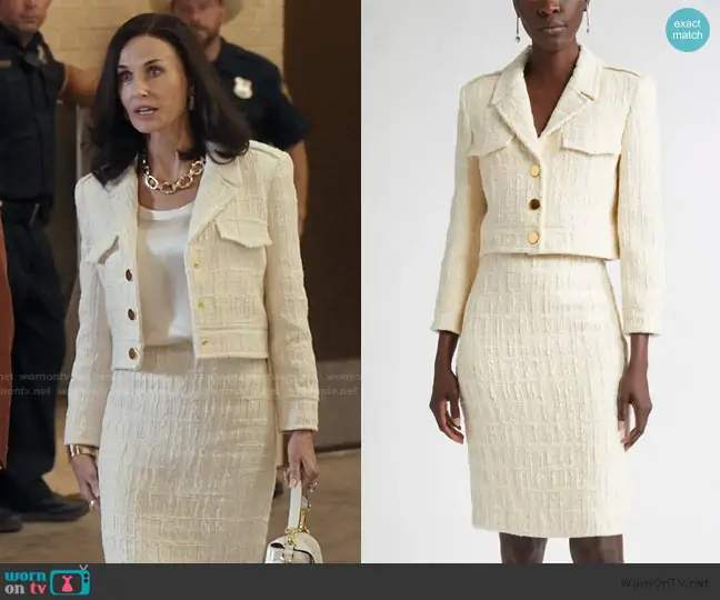 Cami Miller (played by Demi Moore) on Landman on Paramount was spotted wearing this pink one shoulder draped dress on Landman on episode 'Plans, Tears and Sirens' (2x09) in Jan 2026. Cami's Dress is the Maite Caped Draped Midi Dress by Roksanda . Cami's Sunglasses is the Polarized Pillow Sunglasses by Oliver Peoples . Cami's Earrings is the Diamond Twiggy Earrings by David Webb . Cami's Bracelet is the Open Scroll Rubellite Diamond Cuff Bracelet by David Webb . Cami's Bag is the Jackie 1961 Leather Shoulder Bag in Burgundy by Gucci . Cami's Shoes is the Signoria Patent Chain Slingback Pumps in Ancora by Gucci .