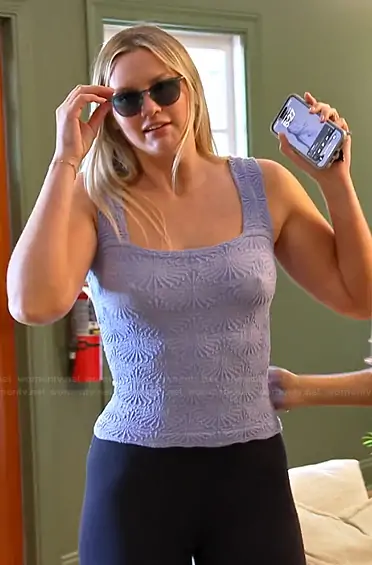 Molly O’Connell on Southern Charm on Bravo TV was spotted wearing this blue square neck knit top on Southern Charm on episode 'Two Truths and a Single Guy' (11x10) in Feb 2026. Molly's Top is the Love Letter Floral Knit Camisole by Free People.