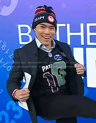 on Today on NBC was spotted wearing this navy print beanie on Today on Feb 06 2026's episode. 's Hat is the Team USA Closing Ceremony Beanie by Polo Ralph Lauren.