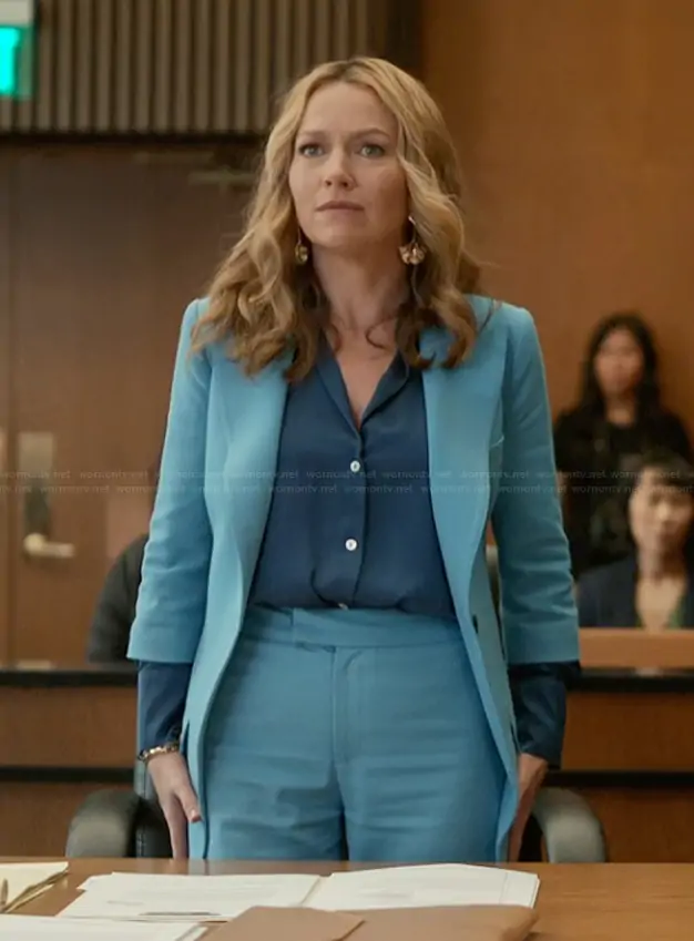 Lorna Crane (played by Becki Newton) on The Lincoln Lawyer on Netflix was spotted wearing this blue short sleeve blazer on The Lincoln Lawyer on episode '7211956' (4x01) in Feb 2026. Lorna's Blazer is the Three-Quarter Sleeve Longline Blazer by Smythe . Lorna's Pants is the Mid-rise Stretch Bootcut Pants by Smythe.