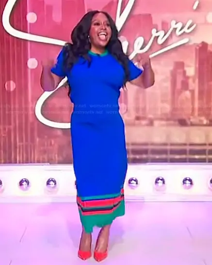 Sherri Shepherd on Sherri on FOX was spotted wearing this blue stripe hem skirt on Sherri on Feb 09 2026's episode. Sherri's Dress is the Island Knit Top by Wales Bonner . Sherri's Skirt is the Island Knit Skirt by Wales Bonner.