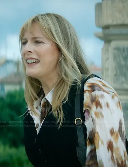 Helene Lando (played by Karin Viard) on Vanished on MGM+ was spotted wearing this abstract print blouse on Vanished on episode 'Rosefinch' (1x01) in Feb 2026. Helene's Top is the Nath shirt by Marant Etoile.
