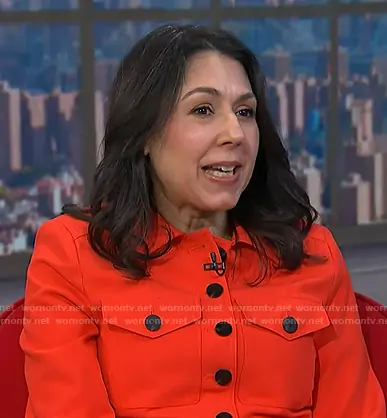 on NBC News Daily on NBC was spotted wearing this red jacket on NBC News Daily on Feb 09 2026's episode. 's Jacket is the Button Front Jacket in Poinciana by Halogen.