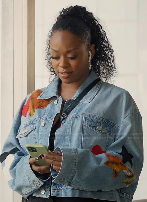 Izzy Letts (played by Jazz Raycole) on The Lincoln Lawyer on Netflix was spotted wearing this on The Lincoln Lawyer on episode 'You're the One That I Want' (4x05) in Feb 2026. Izzy's Jacket is the Patch-Embroidered Crop Denim Jacket by Marni.