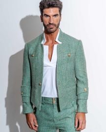 on Today on NBC was spotted wearing this green tweed jacket and pants on Today on Feb 10 2026's episode. 's Jacket is the Star Neck Jacket in Green by Orttu . 's Pants is the Giovanni Pants in Green by Orttu.