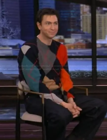 on Live with Kelly and Mark on Disney ABC Home Entertainment was spotted wearing this argyle print sweater on Live with Kelly and Mark on Feb 10 2026's episode. 's Sweater is the Wool sweater by JW Anderson.