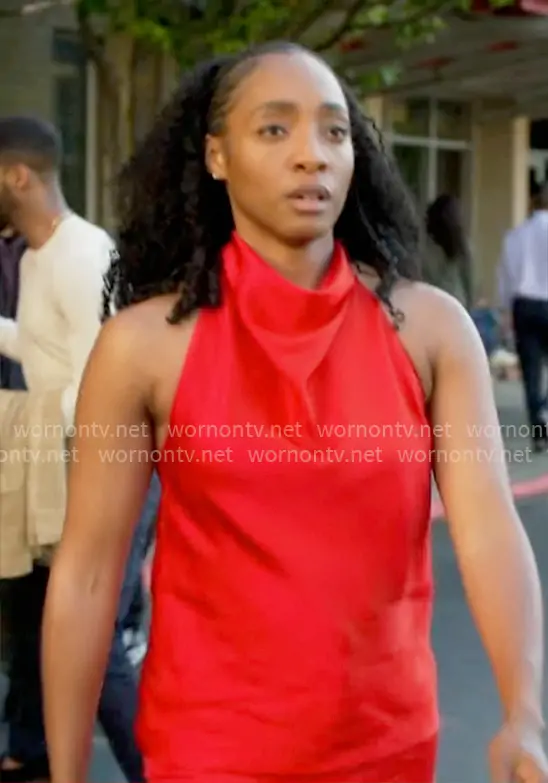 Faith Mitchell (played by Iantha Richardson) on Will Trent on ABC was spotted wearing this red halter top on Will Trent on episode 'You're Not That Person Anymore' (4x06) in Feb 2026. Faith's Top is the Draped Satin Halterneck Top by Stella McCartney.