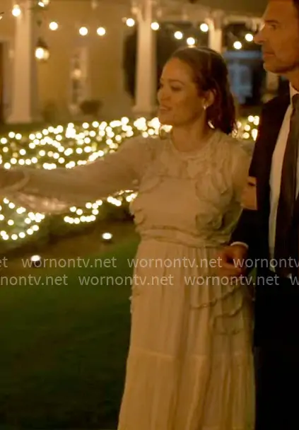 Angie Polaski (played by Erika Christensen) on Will Trent on ABC was spotted wearing this wedding dress on Will Trent on episode 'You're Not That Person Anymore' (4x06) in Feb 2026. Angie's Dress is the Iona Dress by Ulla Johnson.